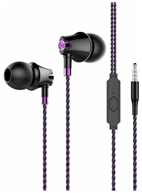 Наушники MORE CHOICE G26 проводные, вакуумные, 1,1м, черный/фиолетовый