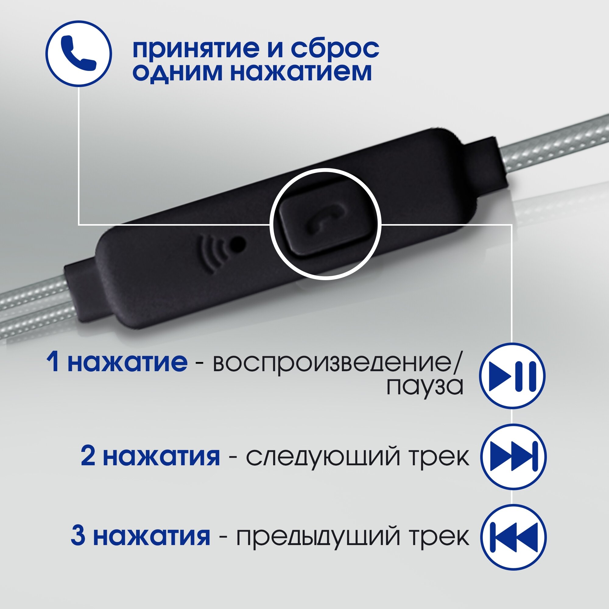| Дополнительная информация | тканевая оплетка; кнопка ответа на проводе |
