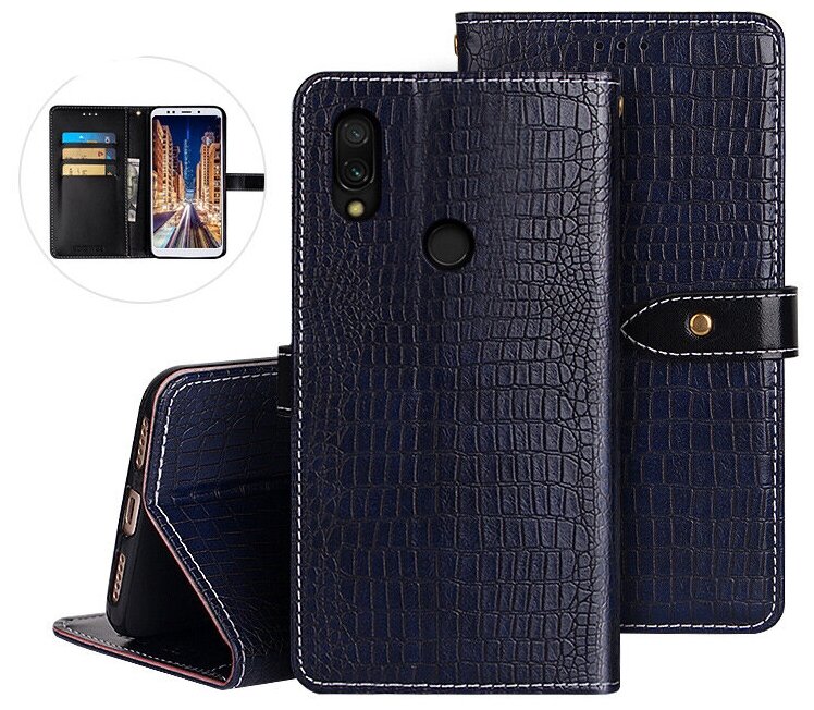 10 цен на Чехол-книжка MyPads для Xiaomi Redmi 7/ Redmi Y3 с фактурной прошивкой рельефа кожи крокодила с застежкой и визитницей черный