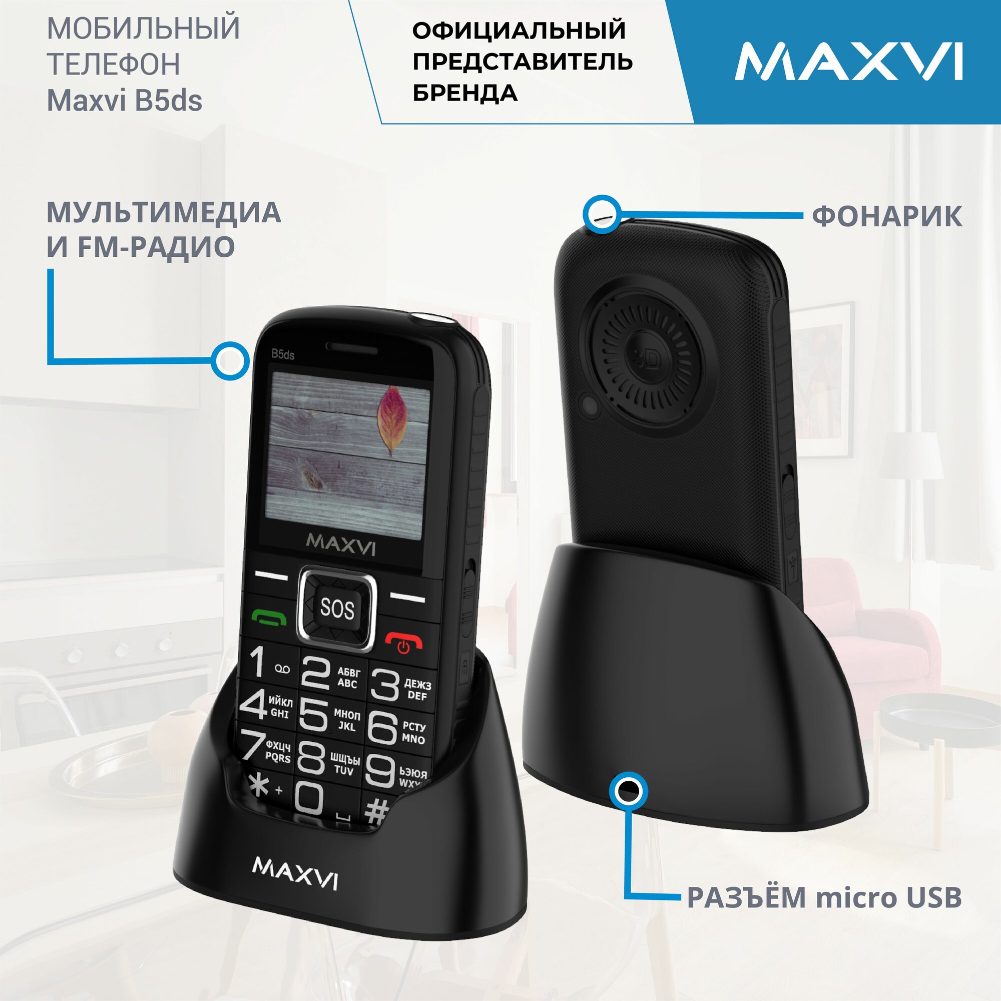 Мобильный телефон Maxvi B5ds Черный информация: