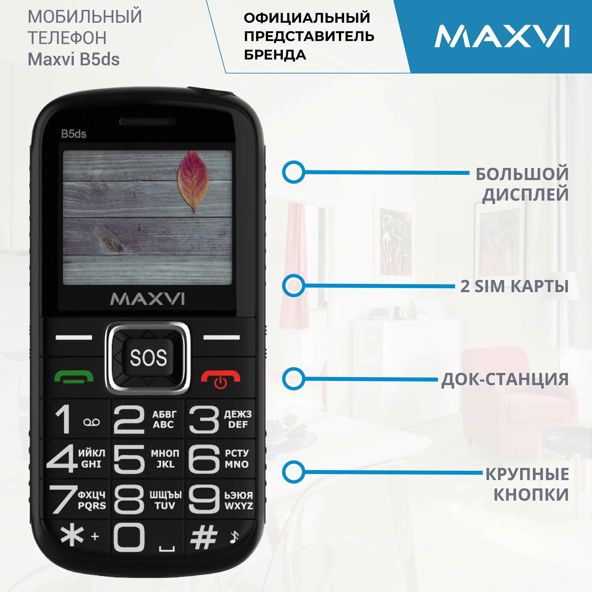Телефон кнопочный Maxvi B5ds с двумя SIM-картами и док-станцией 2 008 ₽