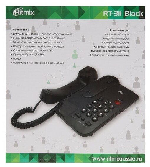 Телефон проводной Ritmix RT-311 чёрный телефонный аппарат информация: