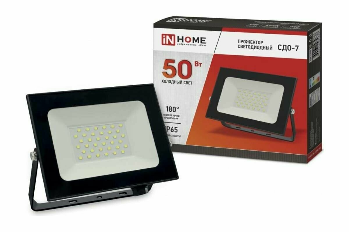 Прожектор светодиодный IN HOME СДО-7 50Вт 230В 6500К IP65 черный