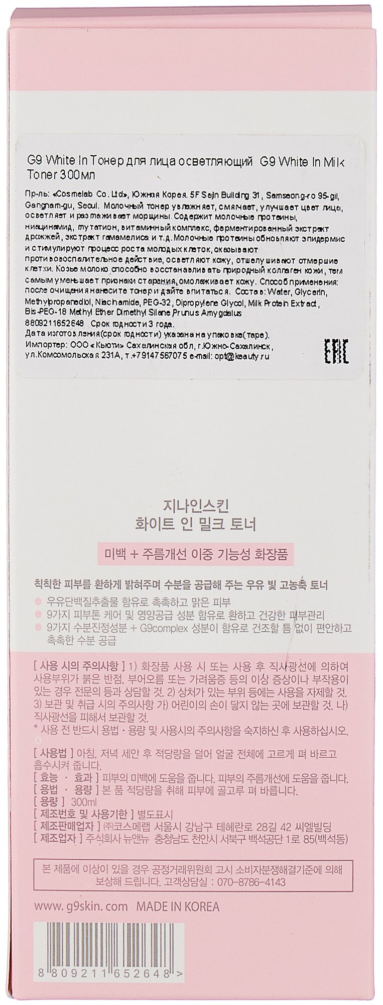10 цен на Тонер для лица осветляющий G9SKIN WHITE IN MILK TONER 300ML.