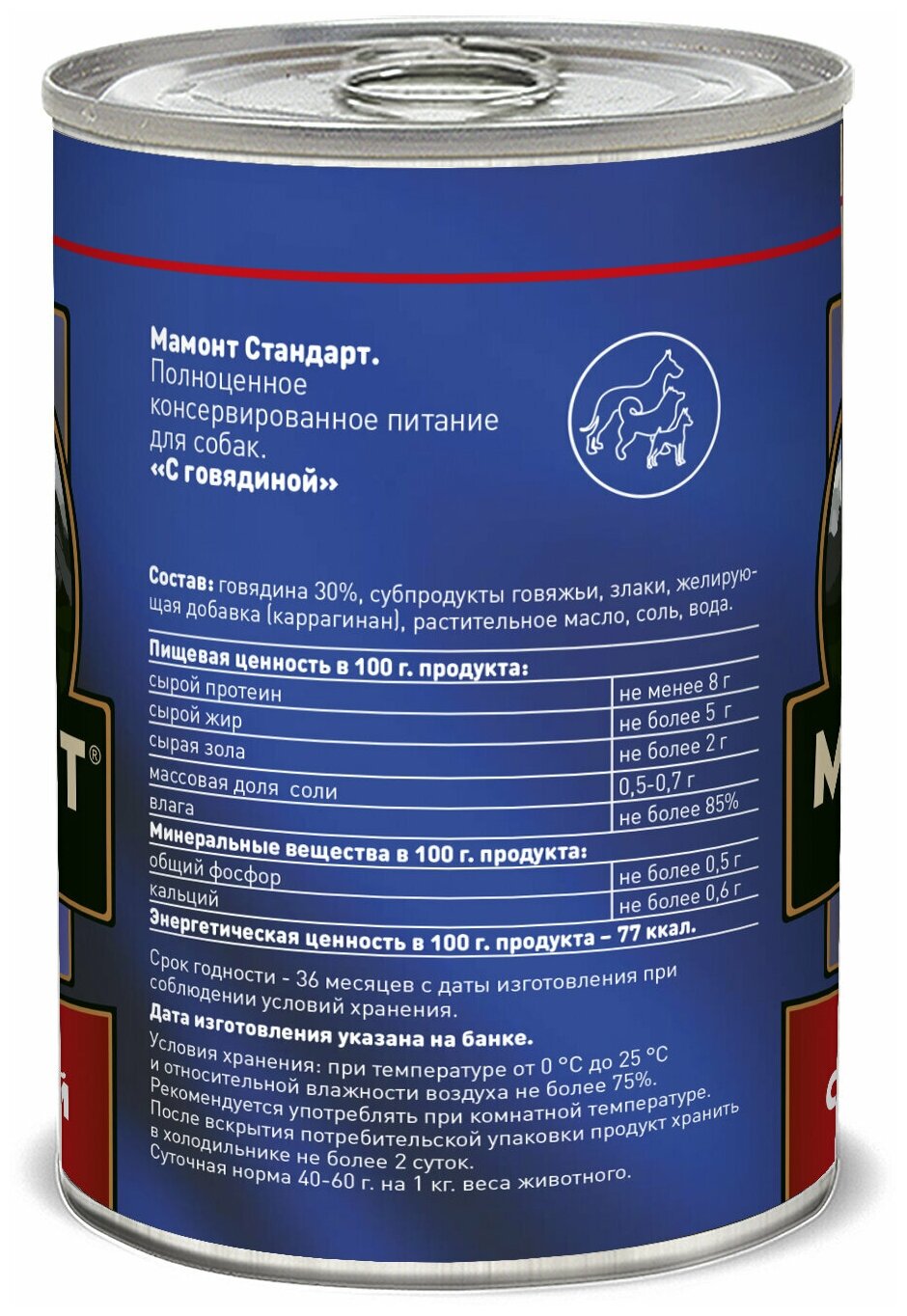 Мамонт Стандарт Говядина влажный корм для собак жестяная банка 0,97 кг (6 шт в уп) информация: