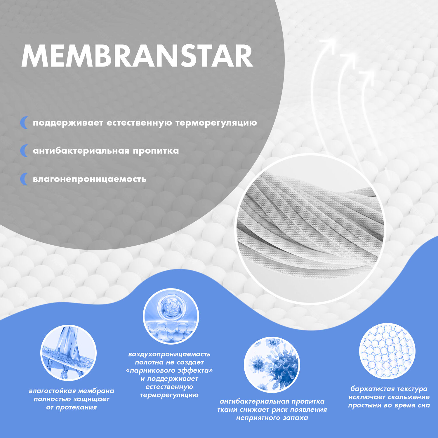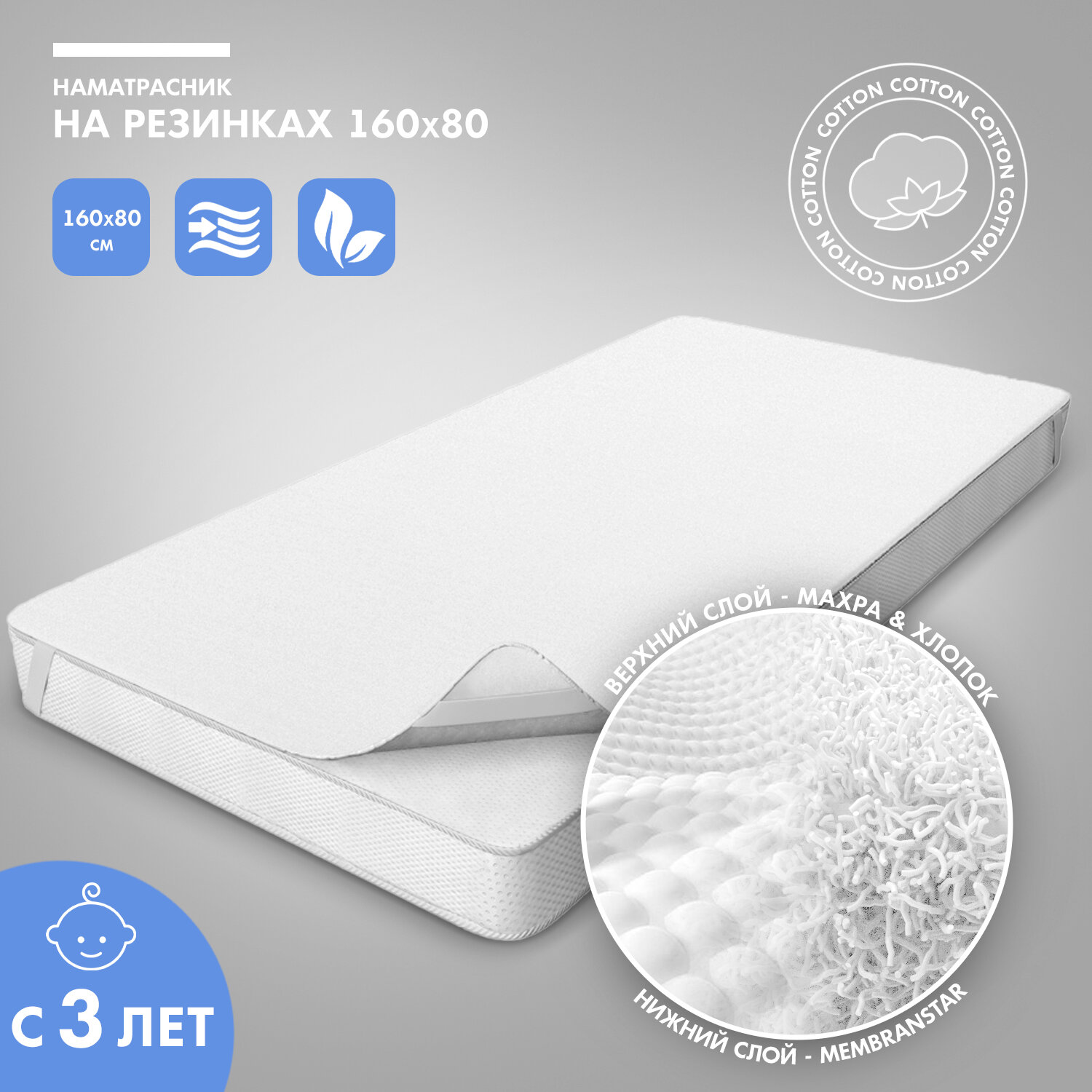 | Дополнительная информация | верхний слой: 80% хлопок, 20% полиэстер; нижний слой: полиуретановая мембрана |
