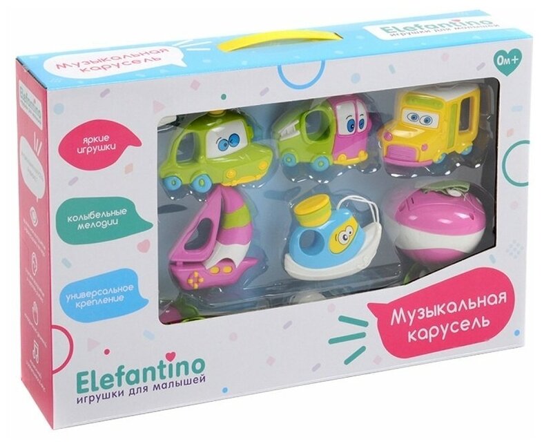 10 цен на ELEFANTINO Музыкальная карусель на кроватку ELEFANTINO. Транспорт (звук) 7949