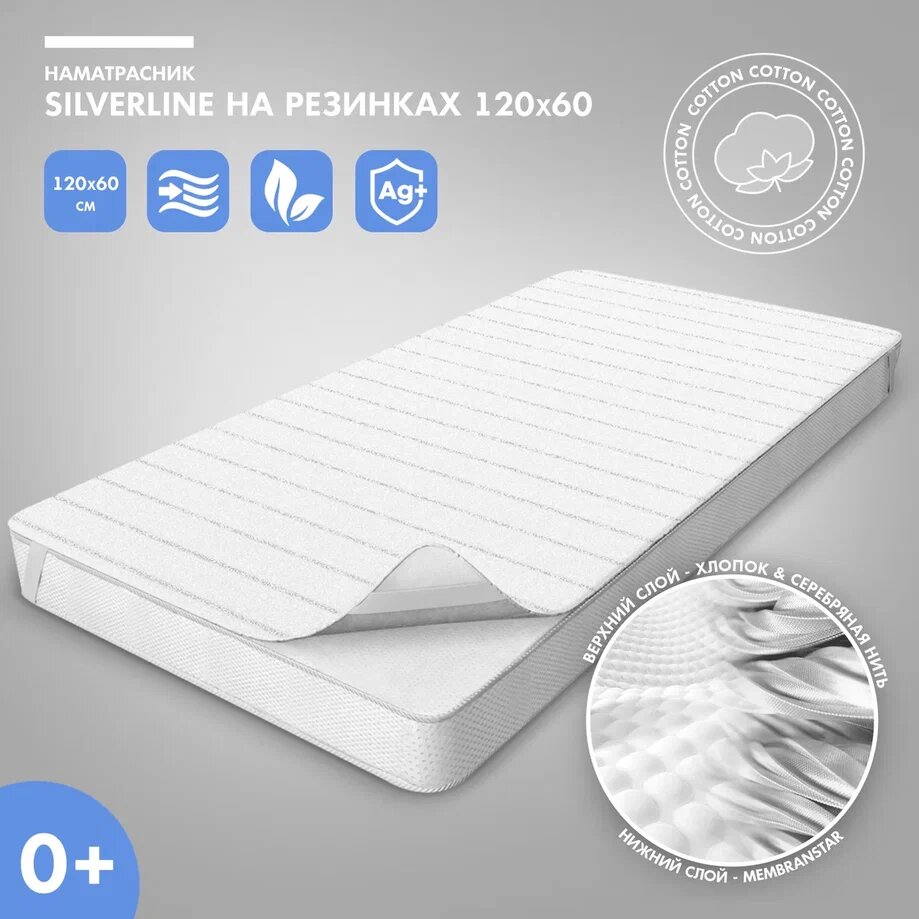 Наматрасник Nuovita на резинках SilverLine, 120x60 см (белый-серебристый) информация: