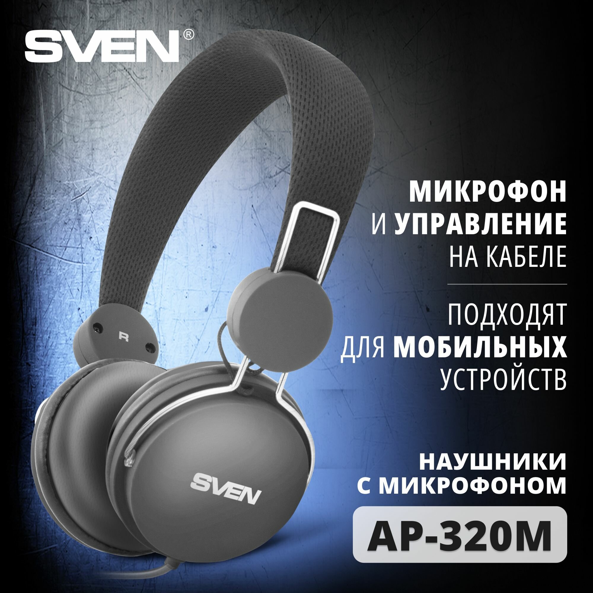 Наушники с микрофоном / Гарнитура с микрофоном SVEN AP-320M черный