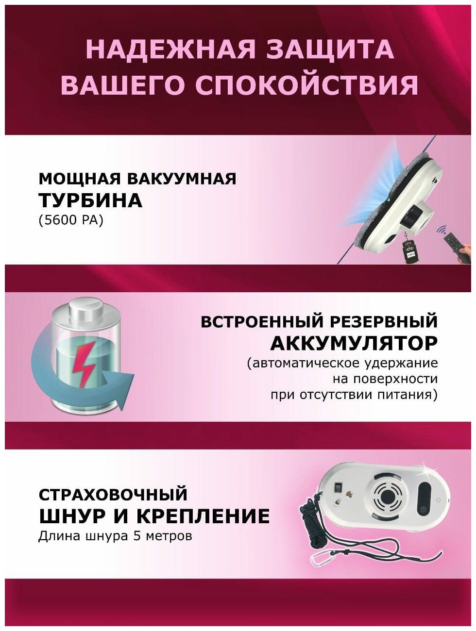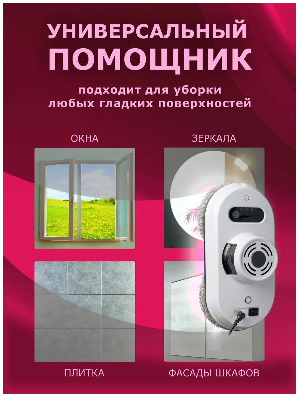 Робот-мойщик окон, с распылителем, страховочный шнур 4 м, пульт ДУ, 90 Вт, 10 сменных тряпок