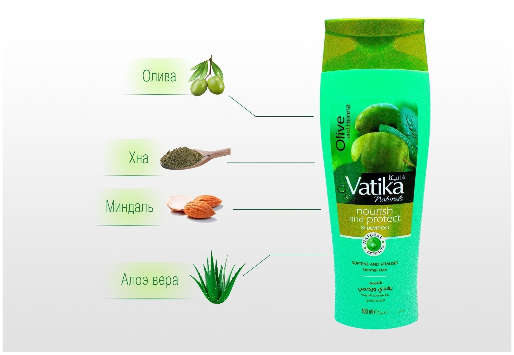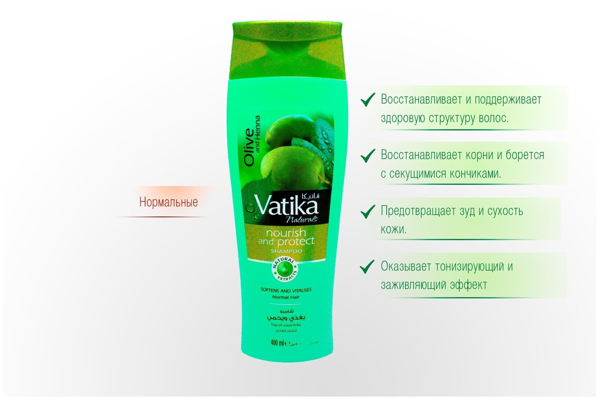 Dabur Vatika OLIVE AND HENNA Nourish And Protect Shampoo (Ватика оливка И ХНА Шампунь питание И защита для нормальных волос, Дабур 400 мл.