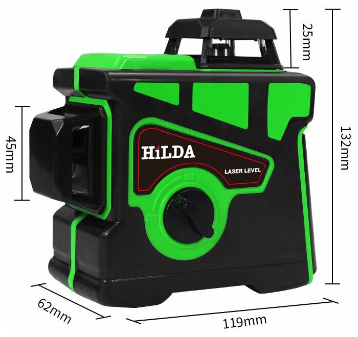 Hilda Лазерный нивелир 12 линий зеленый луч с магнитным кронштейном без треноги информация:
