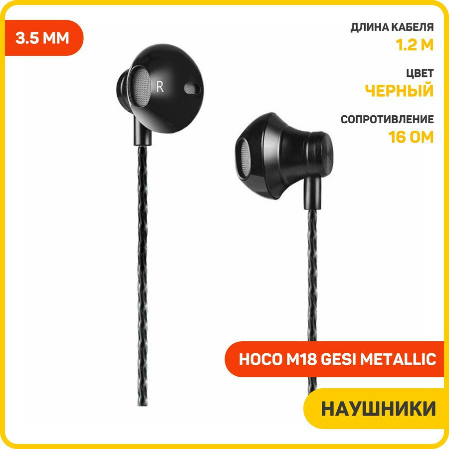 Проводные наушники HOCO M18 Gesi Metallic, Jack 3.5mm, 1.2 м, черный