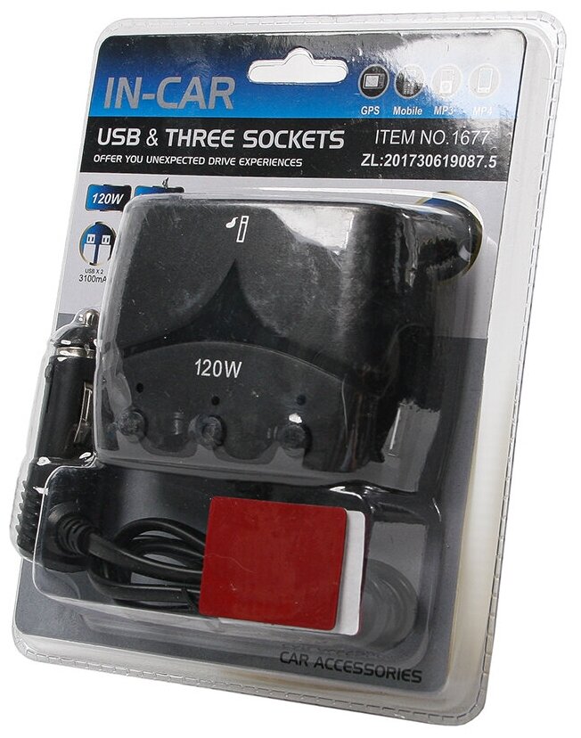 Разветвитель прикуривателя 2USB 3 разъема 12-24V (NO 1677) информация: