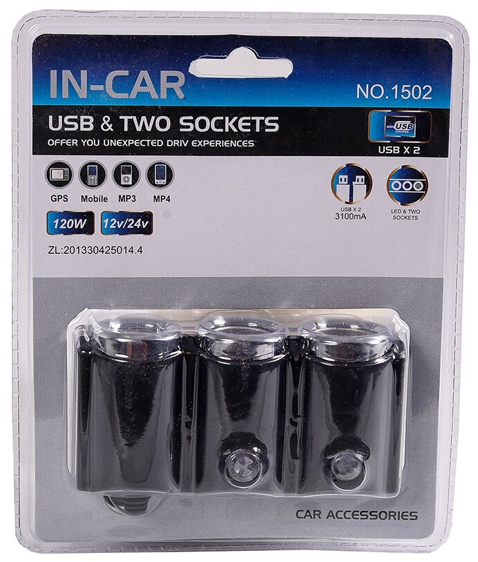Разветвитель прикуривателя 2USB 2 разъема 12-24V (NO 1502) информация: