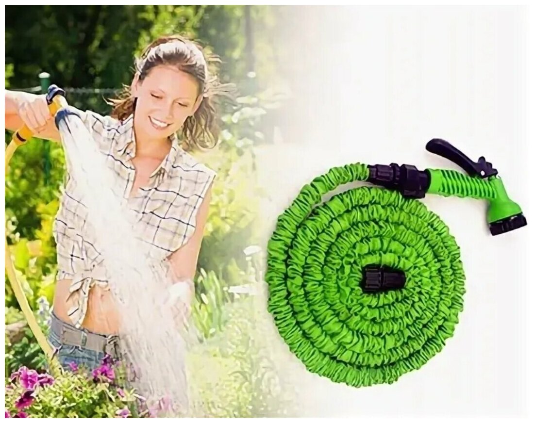 Шланг садовый для полива растягивающийся увеличивающийся лейка-распылитель и насадка быстросъем, пистолет 30 метра