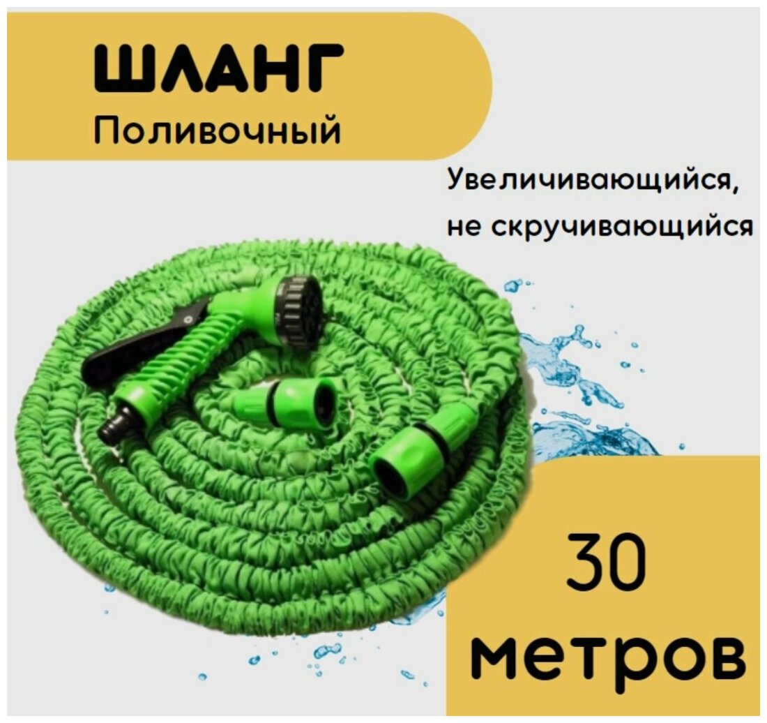 Шланг садовый Magic Hose, растягивающийся шланг для полива, шланг водяной с распылителем, 30 м.