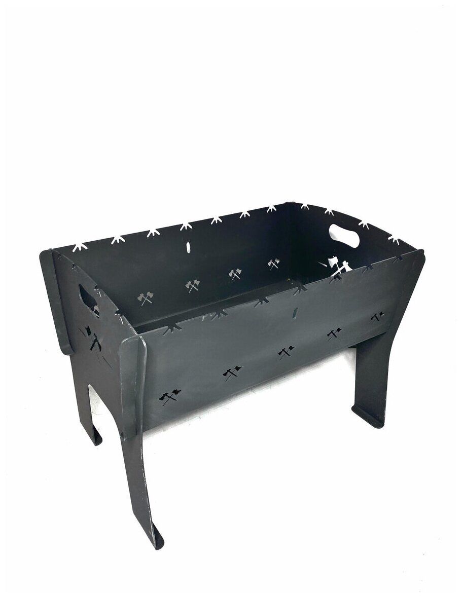 Мангал 800 мм. с полкой-решёткой и полкой под казан, сталь рифленая-усиленная 3 мм. разборный, с полкой под дрова
