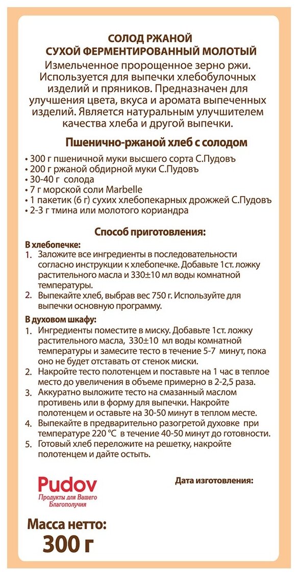 Солод ржан.фермент. С.пудовъ 3 информация: