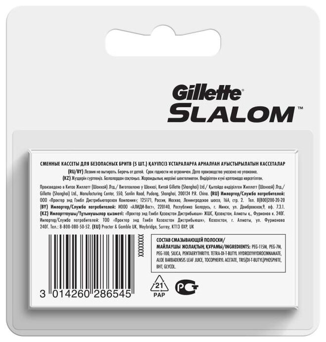 Сменные кассеты Gillette Slalom с экстрактом алоэ, 5 шт.