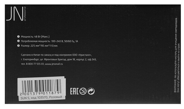 Лампа для гель-лака JessNail SUN 5, UV/LED, 48 Вт, таймер 10/30/60 сек, розовая информация: