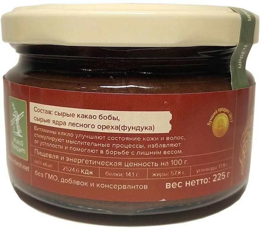 Живой продукт Урбеч из какао-бобов и фундука, 225 г информация: