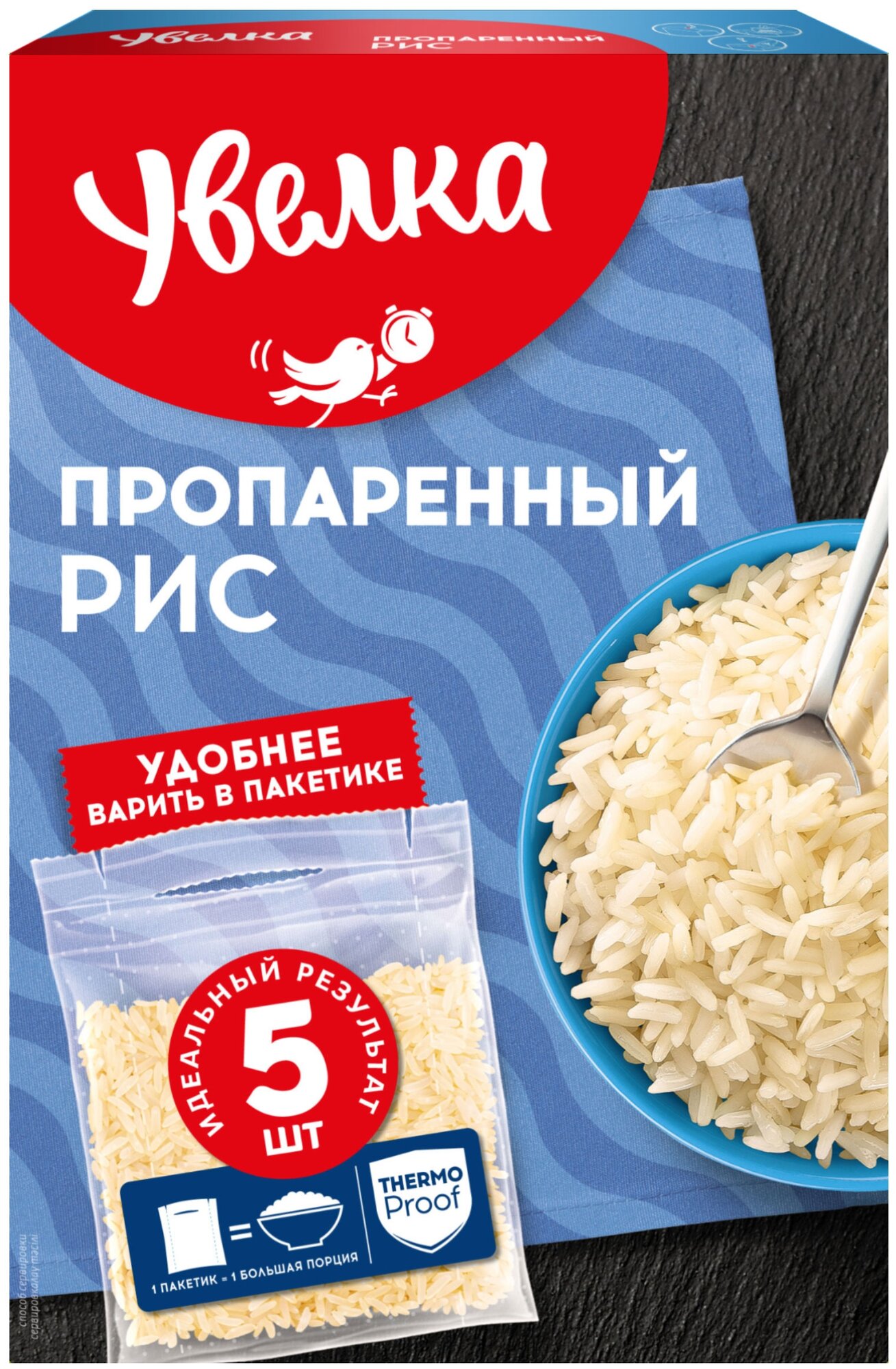Увелка Рис длиннозерный пропаренный, 5 пак х 80 г, 6 шт