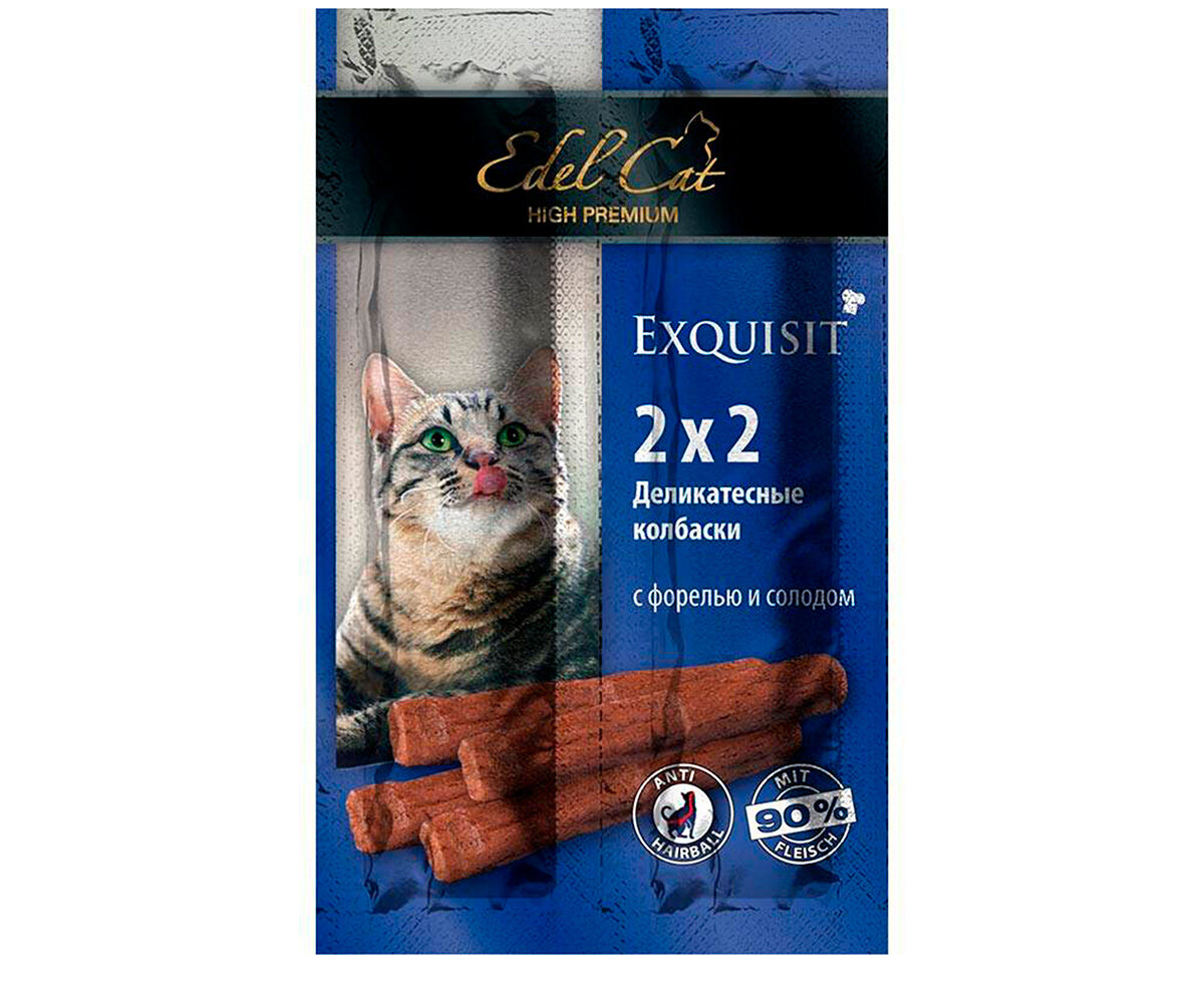 Отзывы на Лакомство для кошек Edel Cat Мини-колбаски Форель с солодом, 2г х 4шт. в уп. 8 г