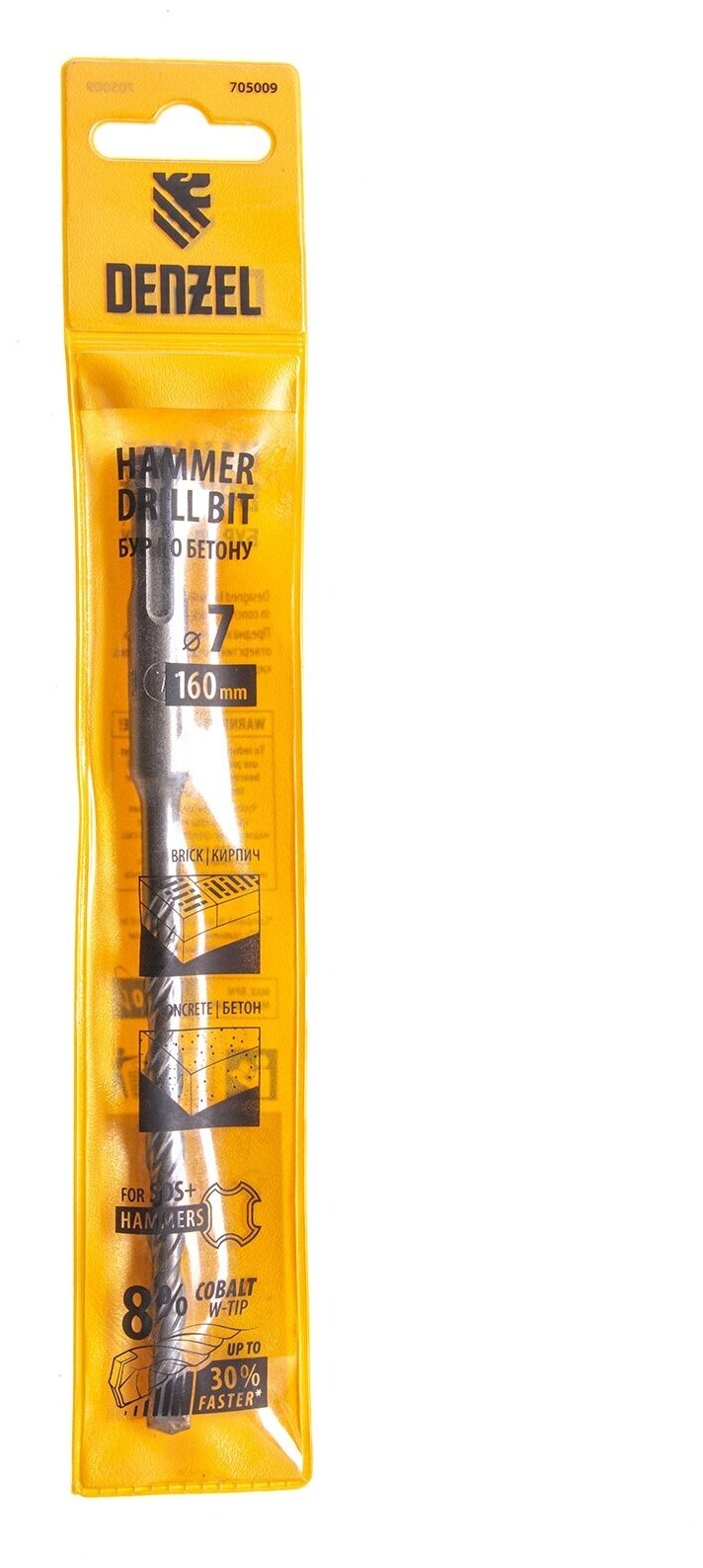 Бур по бетону, двойная спираль, Cobalt W-tip (7x160 мм; SDS PLUS) Denzel 705009