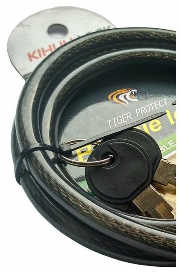 40052 Замок велосипедный тросовый с ключом, замок для коляски, для самоката BASARA B3-1000 MBP, 1000 мм