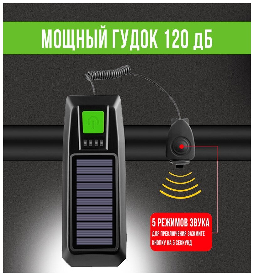Велосипедный фонарь 3 в 1, фара для велосипеда, велофонарь, велофара, с гудком, на солнечной батарее, черный, Zurkibet информация: