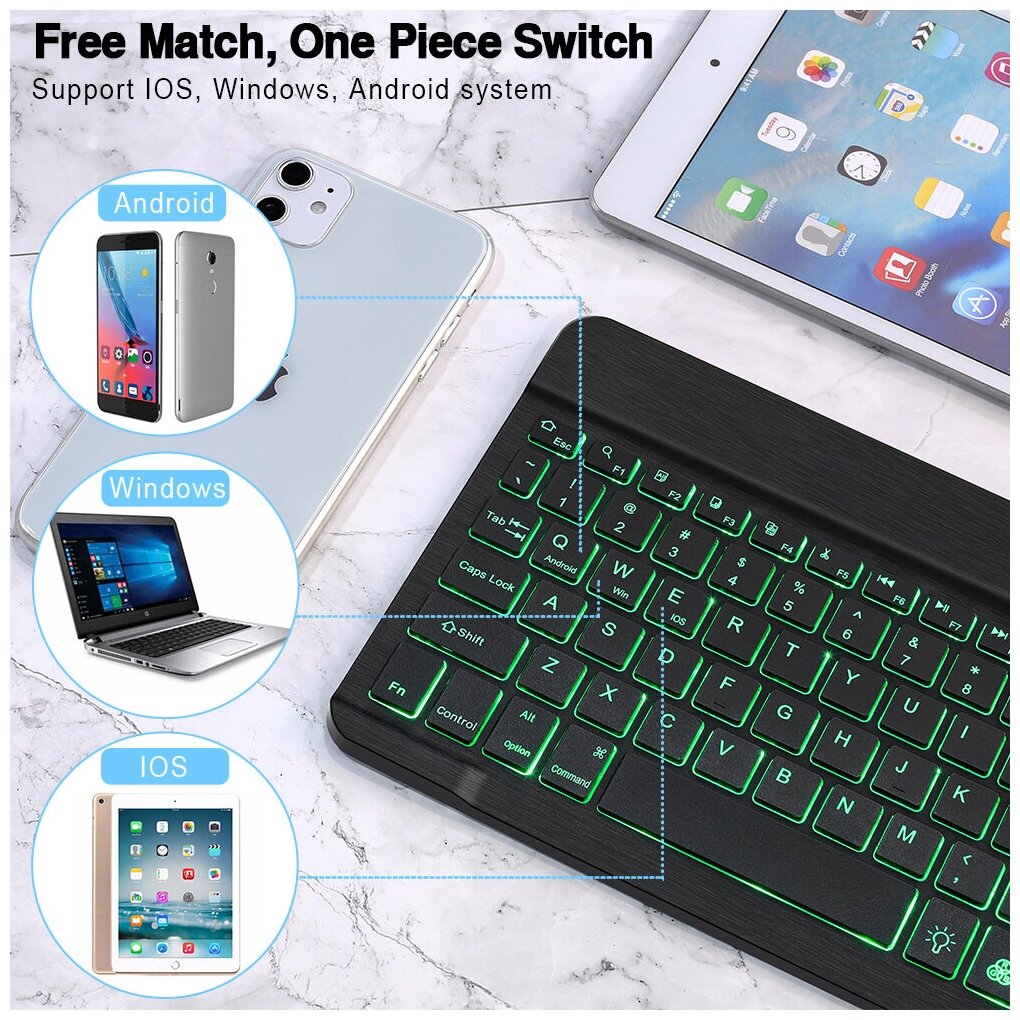 10 цен на Клавиатура мембранная беспроводная для компьютера/планшета/телефона, 87 клавиш с подсветкой, Bluetooth, русская раскладка, бесшумные клавиши.
