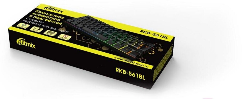 Клавиатура проводная, компактная с подсветкой RITMIX RKB-561BL (черный) 1 497 ₽
