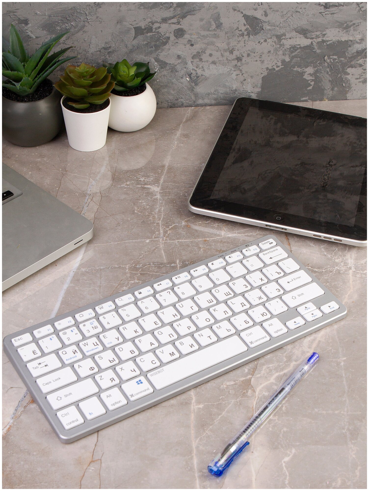 Клавиатура беспроводная, перезаряжаемая, стильная для ПК, ноутбука, планшета, смартфона или Smart TV, серебристая информация: