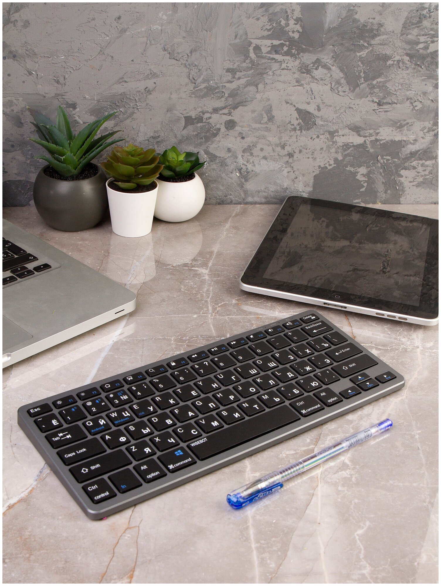Клавиатура беспроводная, перезаряжаемая, стильная для ПК, ноутбука, планшета, смартфона или Smart TV, серая информация: