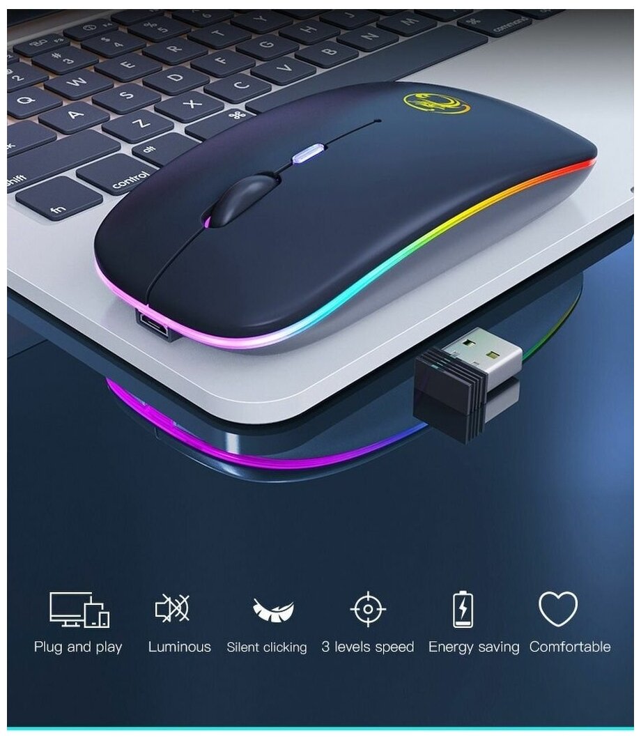 Беспроводная мышь блютуз WiFi Silence Dragon бесшумная с подсветкой, черная информация: