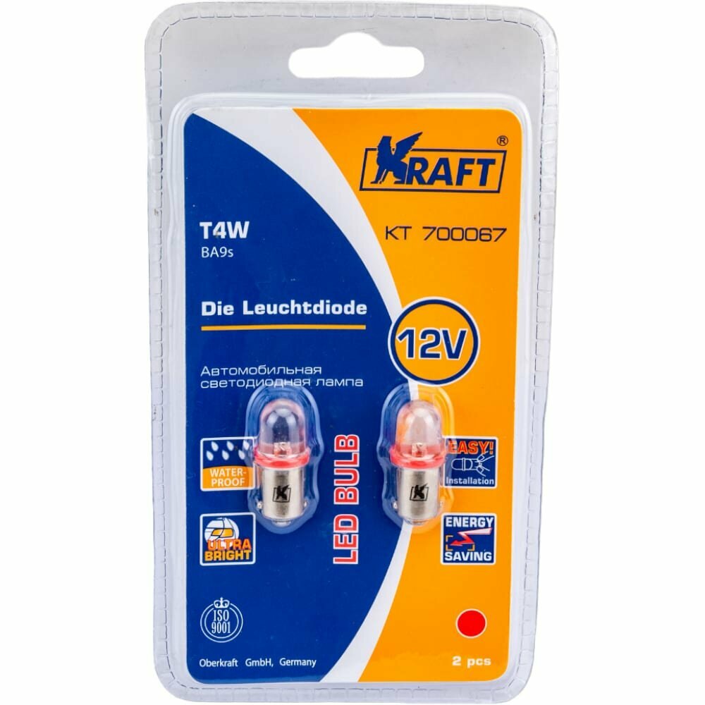 KRAFT KT700067 Светодиодная лампа T4W (BA9s) 12v Red (2 шт.Блистер)