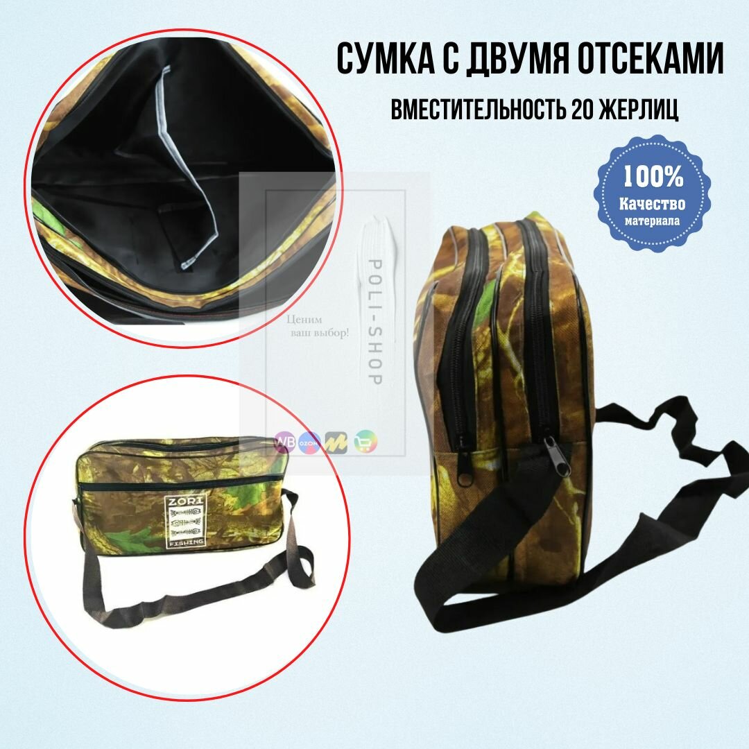 Сумка для жерлиц / Сумка для зимней рыбалки / чехол рыболовный Zori Fishing на 20шт ( с 2 отсеками) информация: