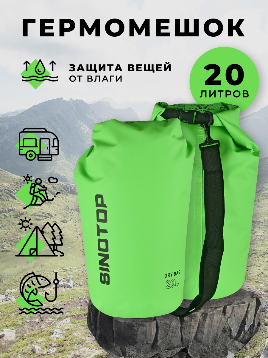 10 цен на Гермомешок 20 л для туризма и рыбалки, кемпинга и охоты салатовый Sinotop