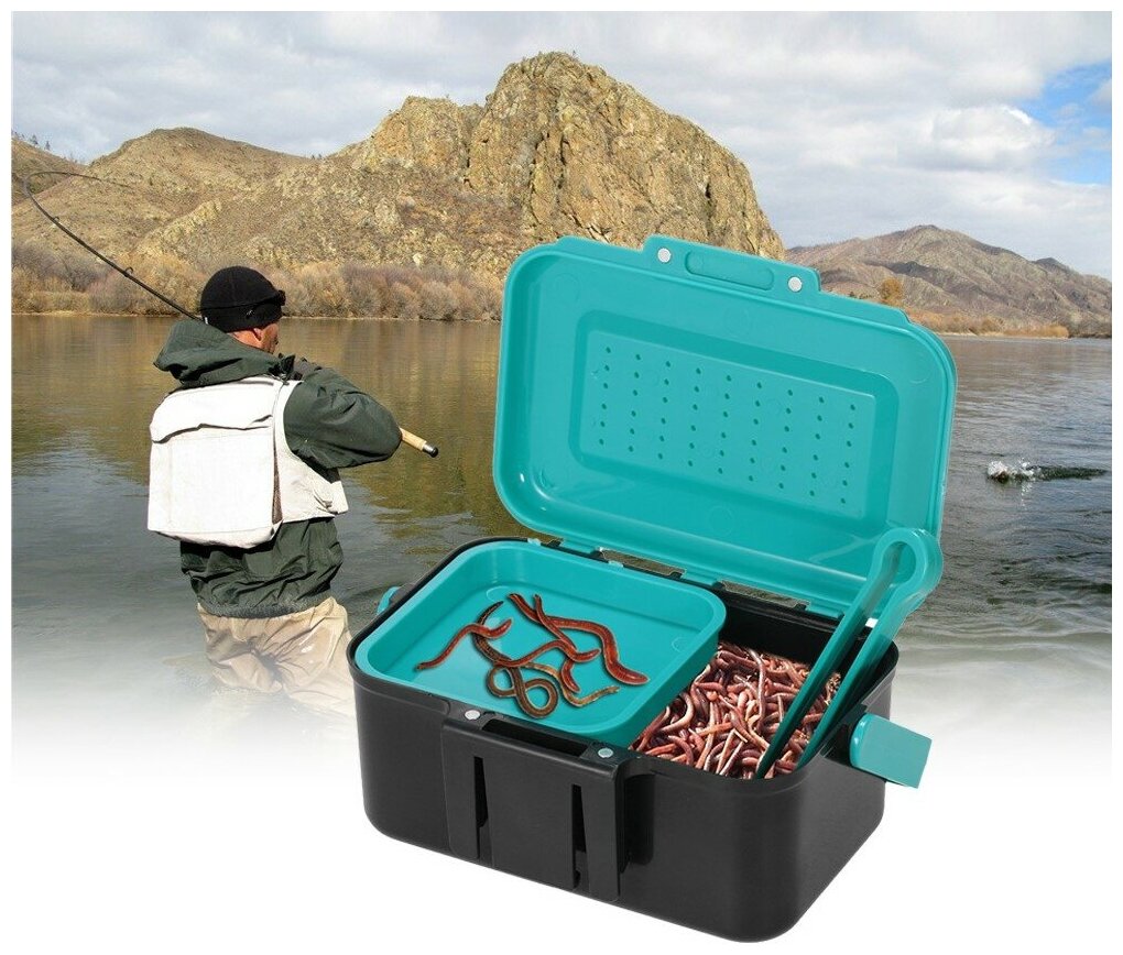 10 цен на Коробка для наживки рыболовная 13 см х 9 см двухсекционная с лотком, пинцетом и крепежом на пояс