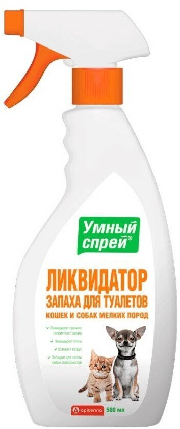 Спрей Apicenna Умный спрей Ликвидатор запаха для туалета кошек и собак мелких пород , 500 мл информация: