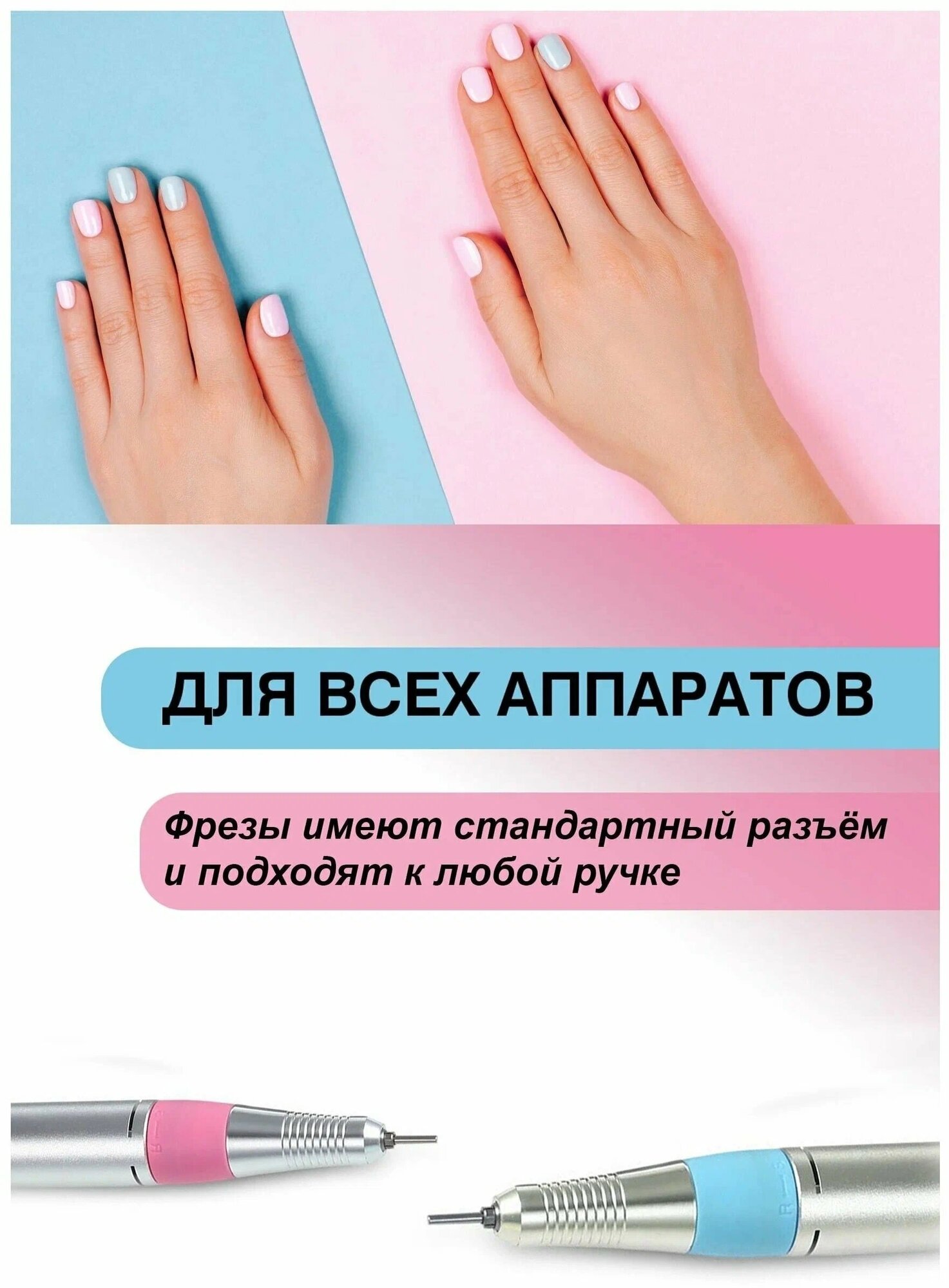| Дополнительная информация | Насадки подходят для большинства аппаратов для маникюра и педикюра с цанговым зажимом. Диаметр основания насадок - 2.35 мм |