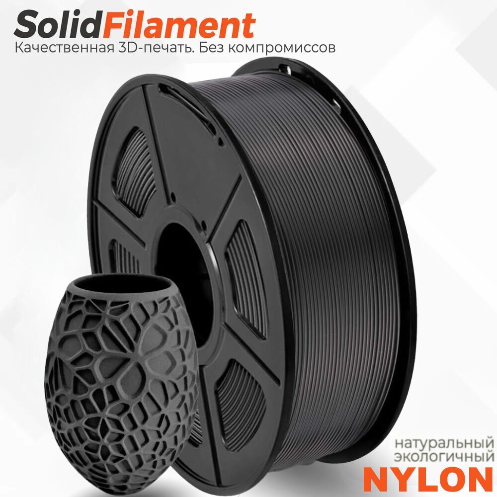 Nylon пластик Solidfilament в катушках 1,75мм, 1кг (Черный/Black) информация: