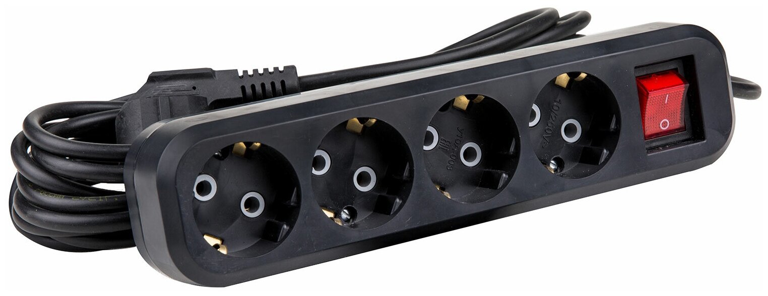 Удлинитель сетевой "фотон" 10-35S, 3м, 5 розеток, черный, с выключателем без заземления