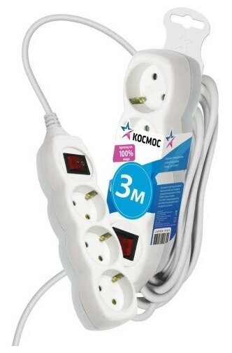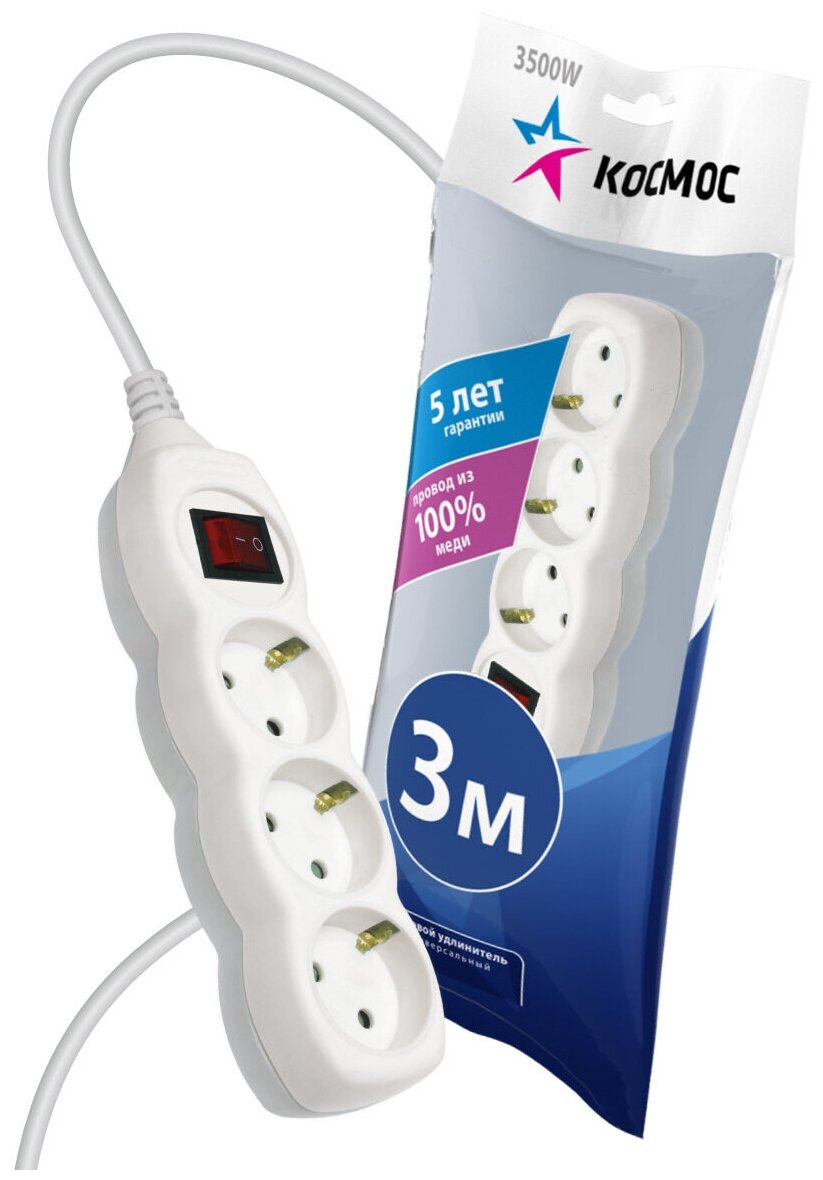 10 цен на Удлинитель-сетевой фильтр YKsm3m-3g-Z-V(K) с выключателе, 3 розетки, 3 м / Космос