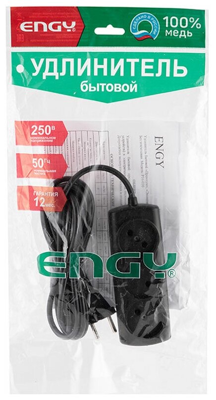 Удлинитель Engy Премиум 3м/3роз. (ПВС 2х0 75) черный информация: