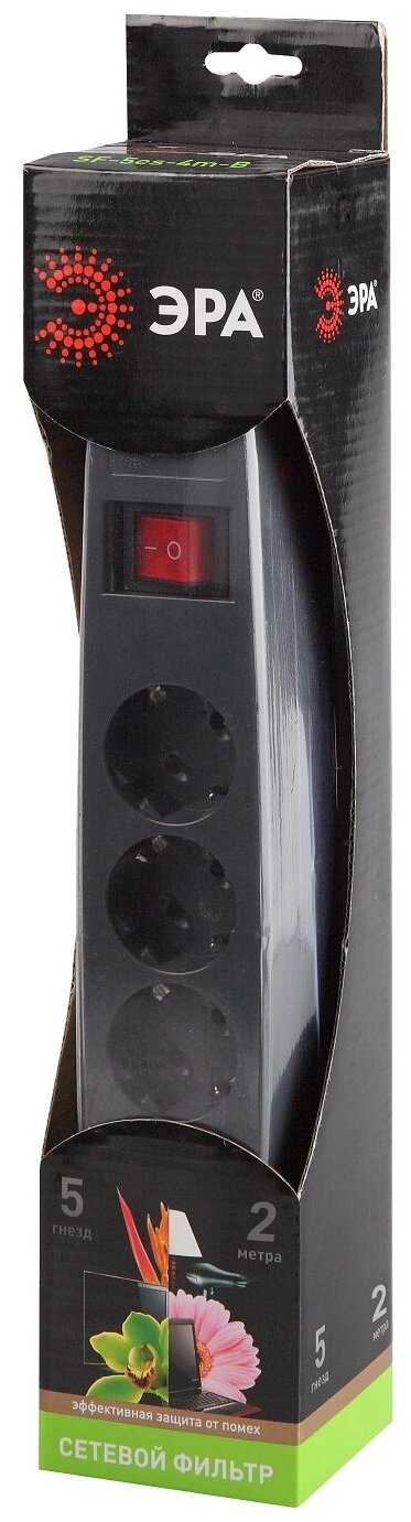 10 цен на Сетевой фильтр ЭРА SFX-5es-2m-B с надежной защитой с заземлением с выключателем 5 розеток 2м 10А черный