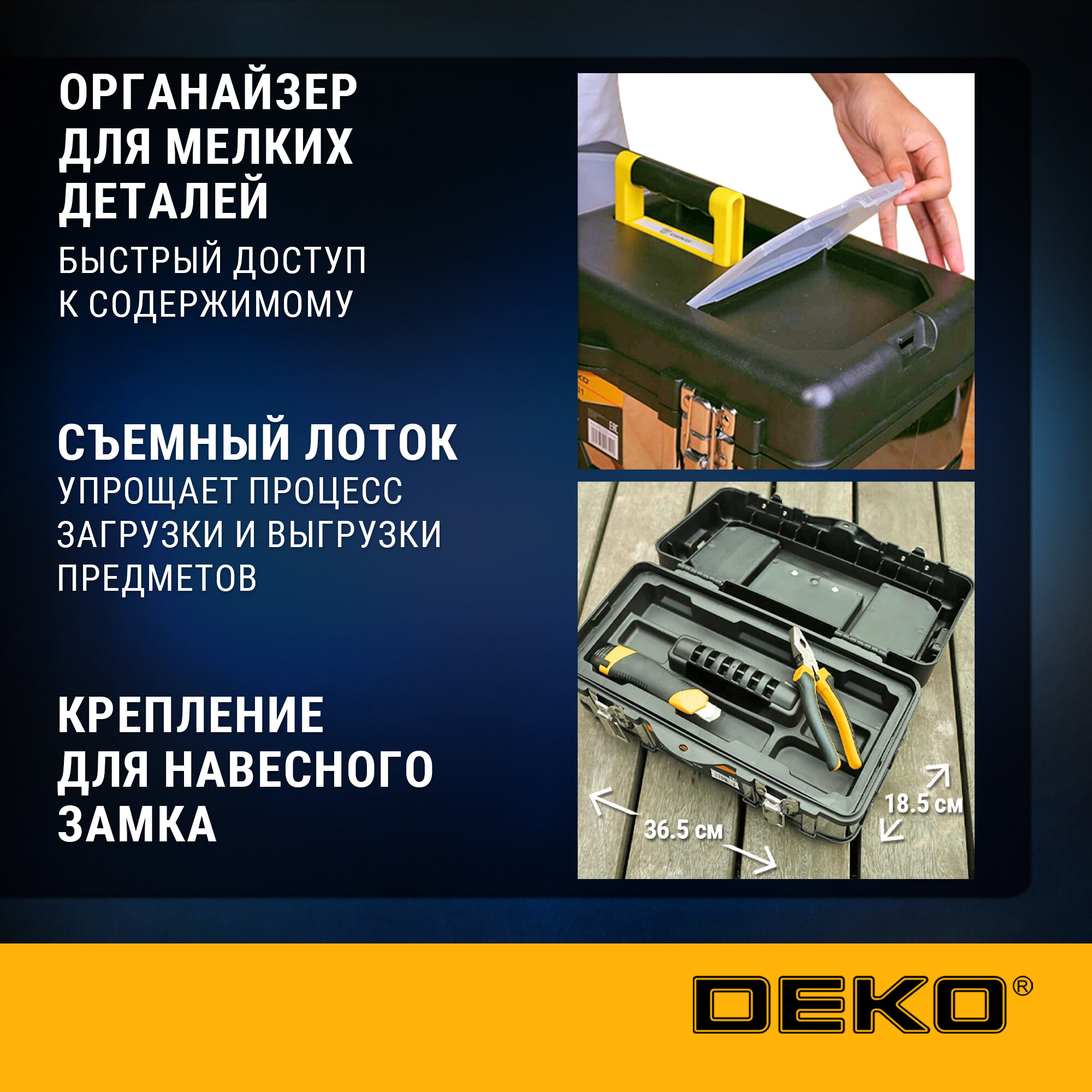 Ящик для инструментов DEKO DKTB43 (36.5х18.5х17см) с органайзером информация: