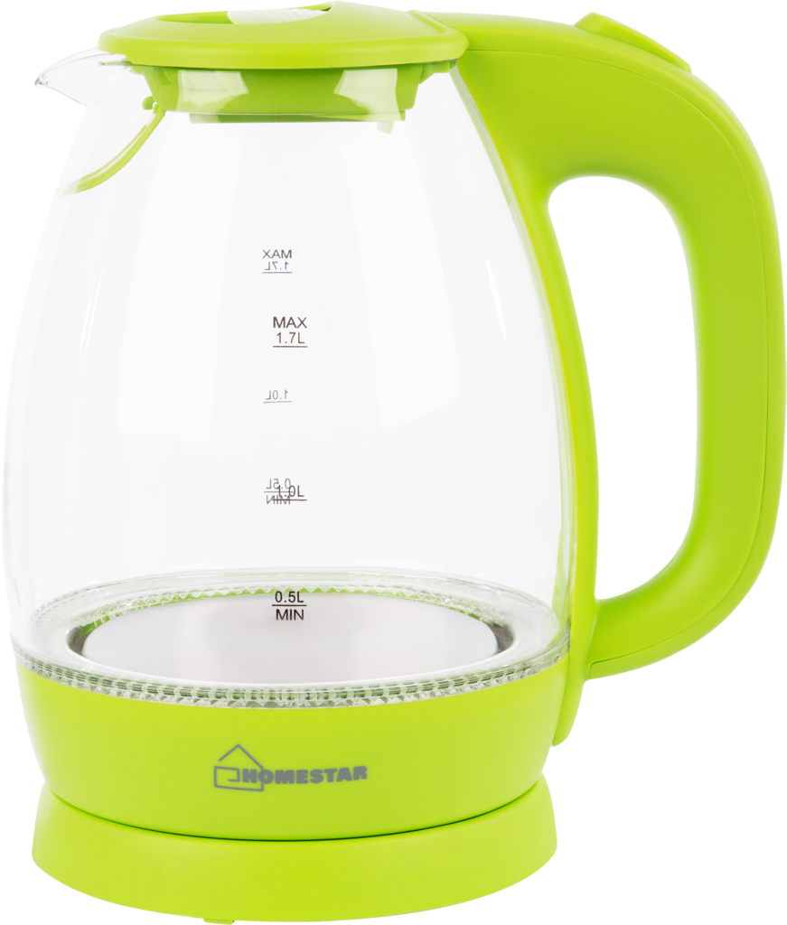 Стеклянный чайник электрический Homestar HS-1012, 1,7 л, пластик зеленый 2 294 ₽
