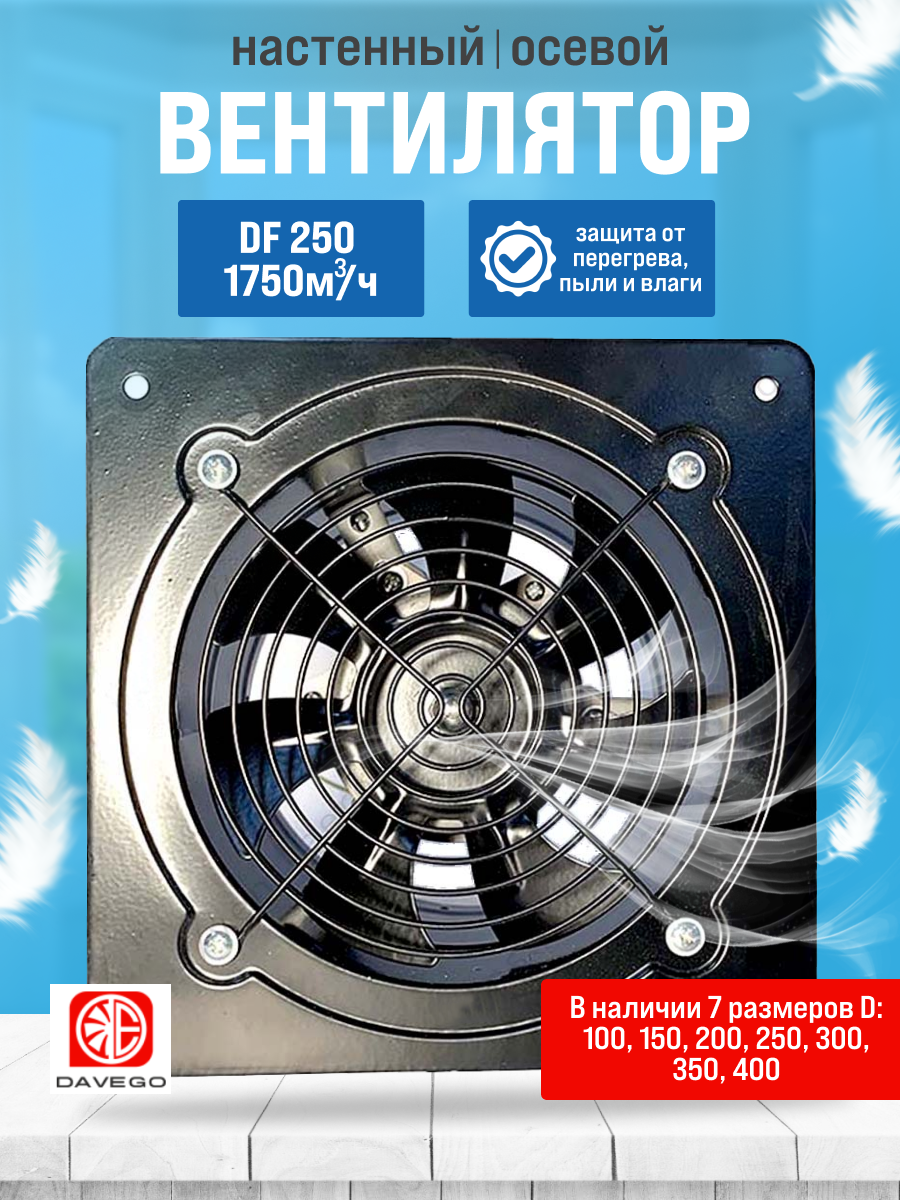 Вентилятор осевой настенный DAVEGO DF 250 1750м3/ч информация: